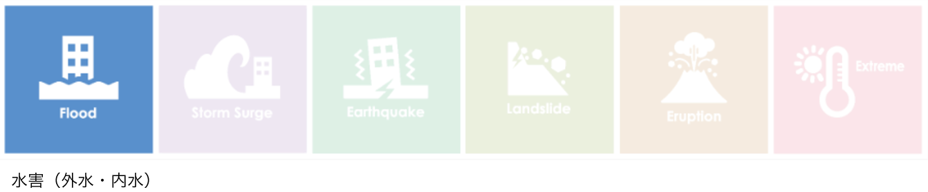 まずは、近年激甚化する台風や豪雨による「水害」を対象として運用を開始します。その他地震・津波、高潮などの災害にも順次拡大し、将来的に日本の主な自然災害をカバーする予定です。