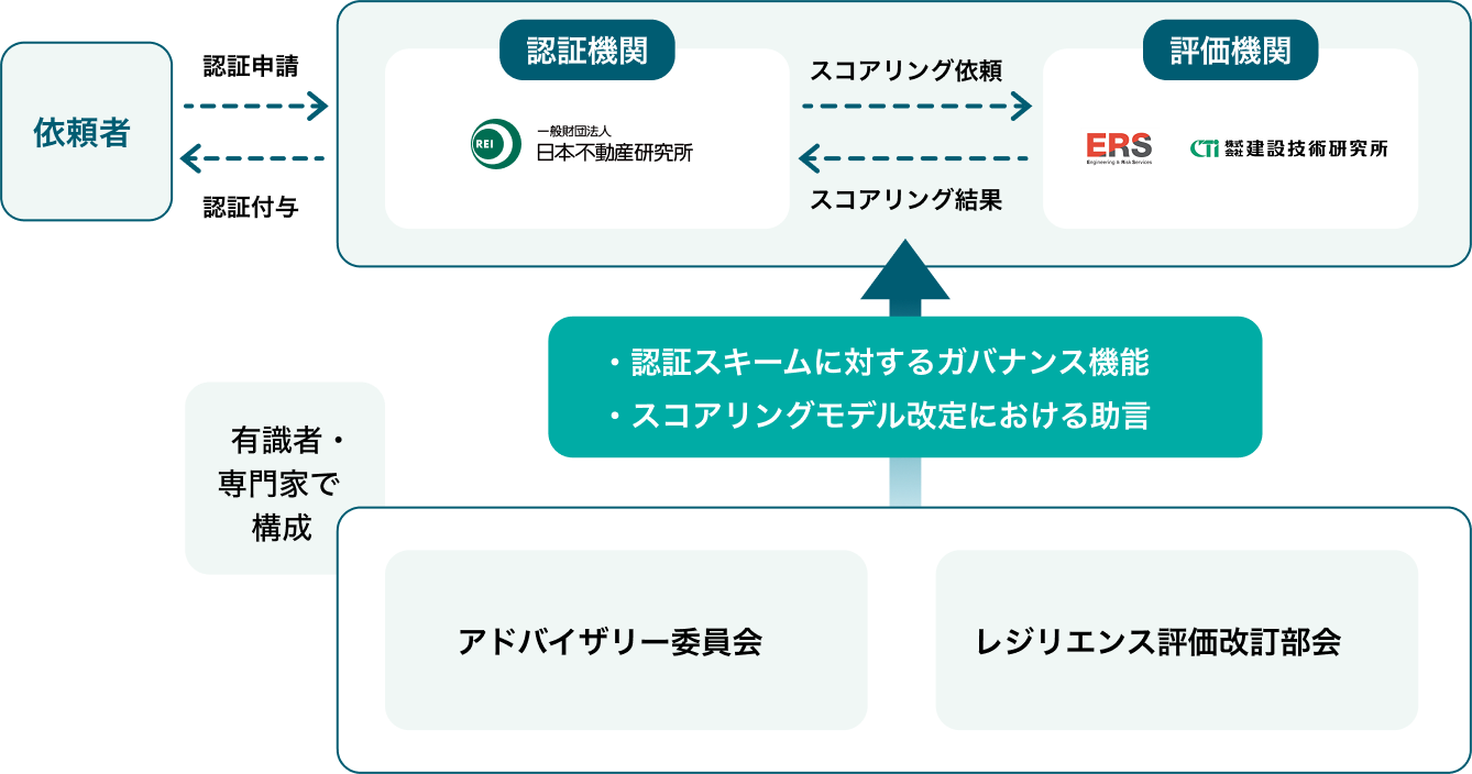 運営主体、認証スキームResRealは以下の主体によって運営されています。認証機関
