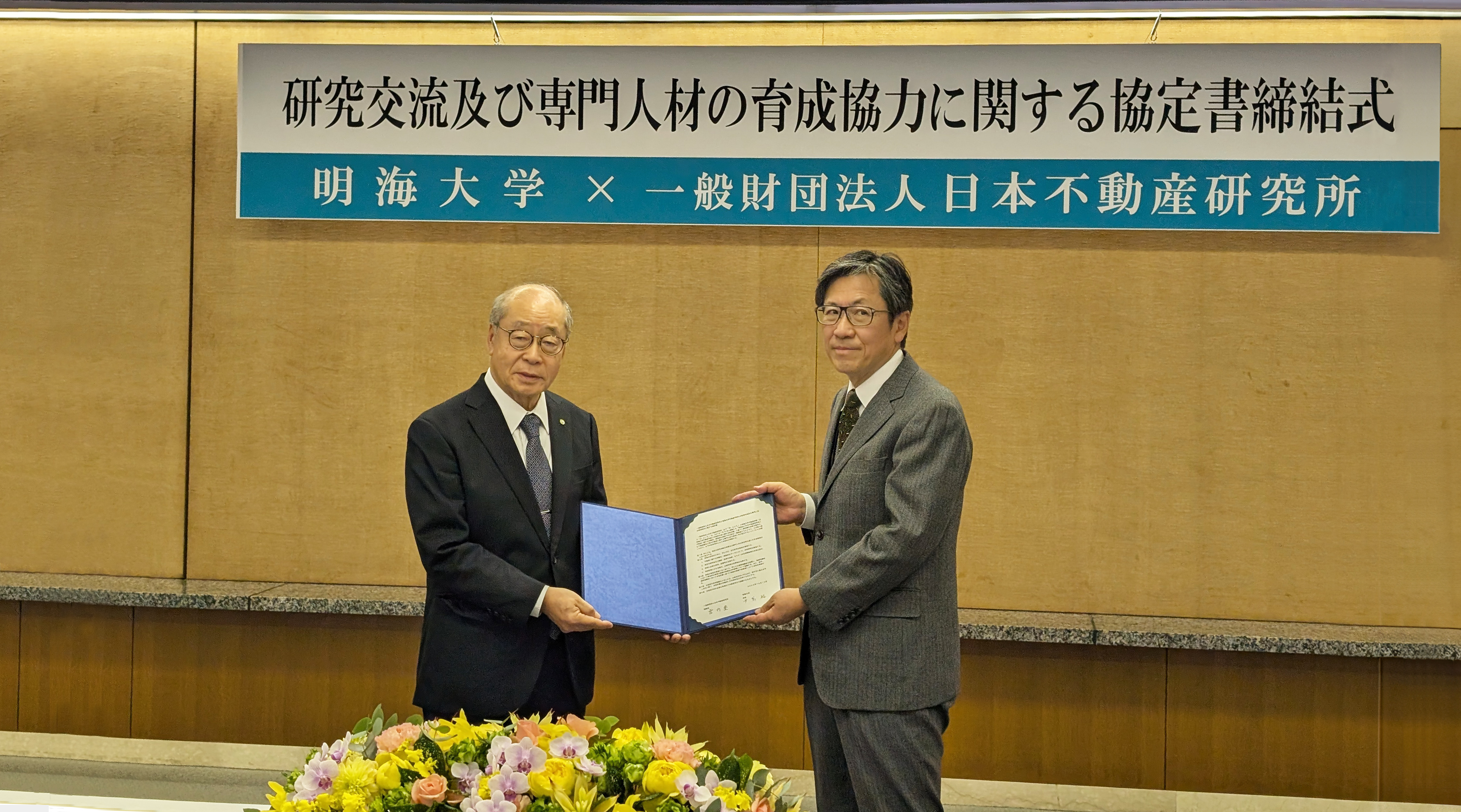 【お知らせ】 明海大学と一般財団法人日本不動産研究所の研究交流及び専門職人材の育成協力に関する協定を締結