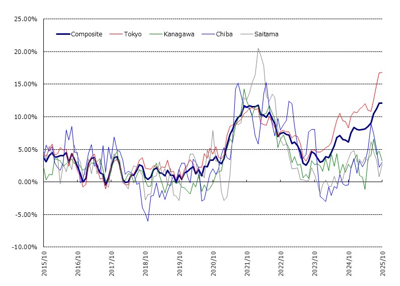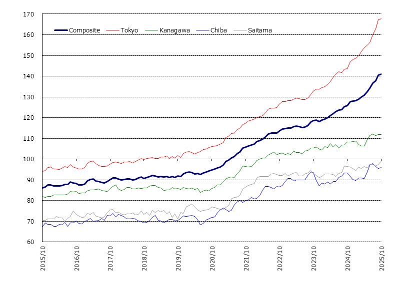 当研究所は、2025年12月24日に「不動研住宅価格指数」10月値を公表いたしました。